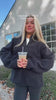 This pullover has a relaxed, slightly boxy fit with a cropped length that sits at the natural waist. It’s designed to feel cozy without being bulky and layers easily over tees or base layers.