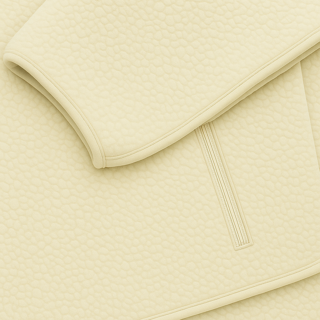 It’s crafted from a soft, premium fleece blend designed for warmth, comfort, and durability. The fabric has a smooth exterior and a plush interior that keeps you warm while staying breathable.